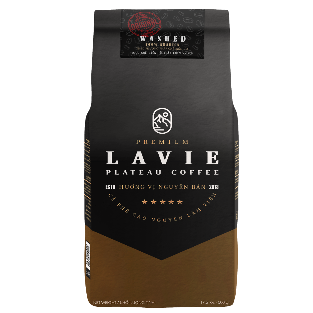 100% hạt cà phê Arabica được chế biến theo phương pháp Full-Washed, rang mộc. Vị thanh, đắng nhanh, hậu ngọt dài, hương nồng nàn phong phú.